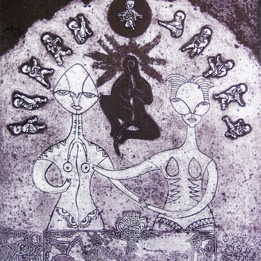 Enrique Garnica tiene clara la senda de la síntesis. Alimenta su interés por relacionarse con iconografías procedentes de épocas y culturas diversas. En sus obras se reúnen frisos y murales prehispánicos, dibujos orientales, placas renacentistas y medievales con un figuración de corte primigenio y que incluso en un guiño, alude a ciertas ilustraciones de seres extraterrestres.